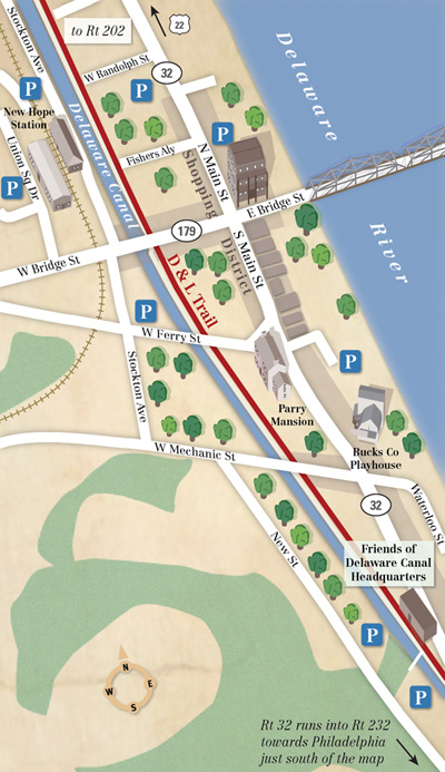 Inset map of New Hope for a Map brochure of the Delaware & Lehigh Canal Trail.