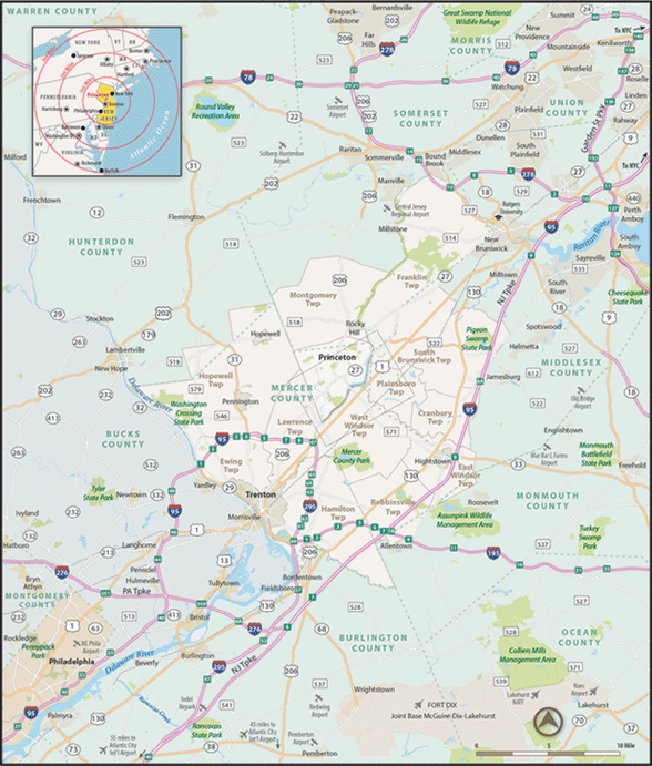 Regional map created for the Princeton Regional Chamber of Commerce. |